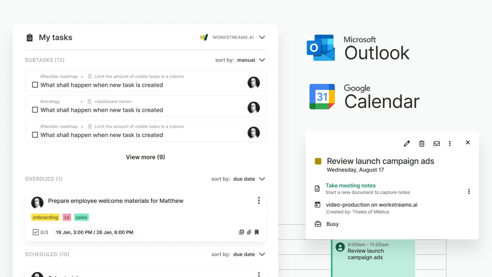We hope you give the calendar integration a spin. It’s the type of feature we love working on the most; one that adds value for our customers while sticking to simple, efficient, and scalable formats. Don’t hesitate to drop us a line with any feedback you might have. You can reach us the old-fashioned way at feedback@workstreams.ai, or you can join our community on Slack!