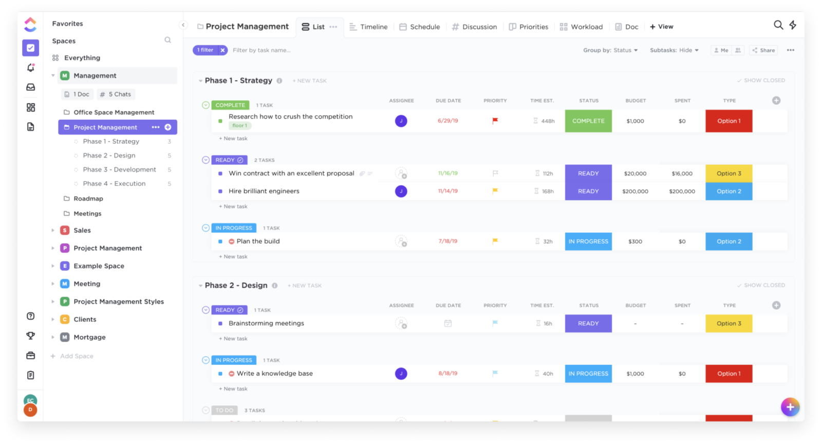 O ClickUp é uma ferramenta ampla e altamente customizável que atende a várias finalidades, desde atribuição de tarefas e acompanhamento de metas até gerenciamento de documentação de projetos.