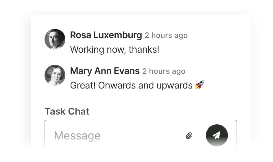 The task chat feature is a game changer, all chat conversation about any job, logged all in the one place