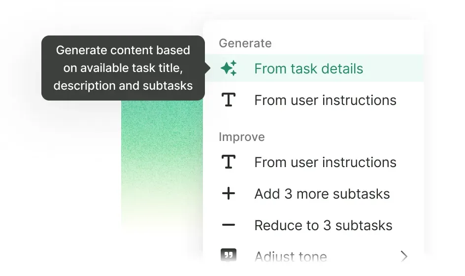 Break down complex marketing campaigns into manageable steps, ensuring each aspect is meticulously executed. Facilitate clear task delegation by outlining step-by-step responsibilities for different team members. Whether it's project planning, task delegation, or creating training modules for your marketing team, our AI Features are your secret weapon for success.