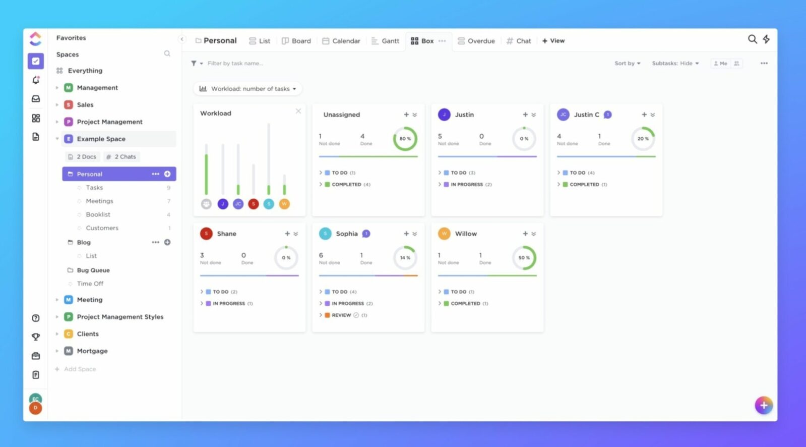 ClickUp is a project management tool with multiple options for automating repetitive tasks. You can also use it for resource management. This project manager software facilitates team collaboration with chat functions, document creation, planning, and organizing processes. It also works well for tracking dependencies. With plenty of customization options, you can make this AI tool fit your company's needs.