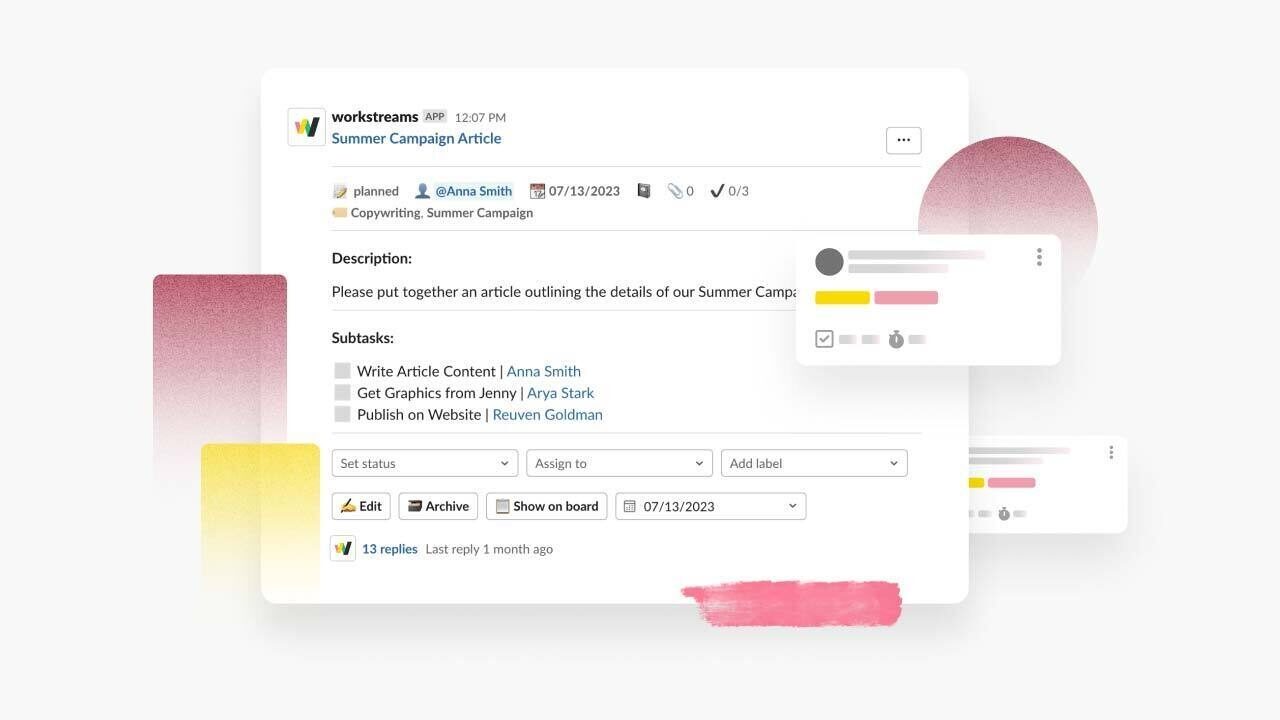 Roughly 30,000 teams have chosen to work with workstreams.ai in Slack, since we seamlessly integrate task management into Slack conversations — allowing users to be more efficient and aligned.
