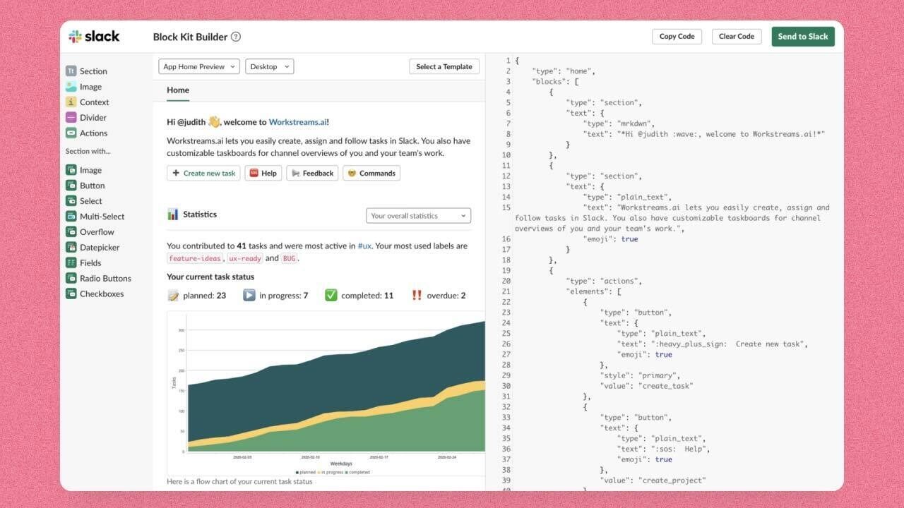 workstreams.ai is always quick to adopt the latest Slack features, especially since our users expect a symbiotic relationship between our app and Slack. So, this hack was the perfect moment to dramatically improve transparency, flexibility, and productivity for the many people who work seamlessly between our app and Slack daily.