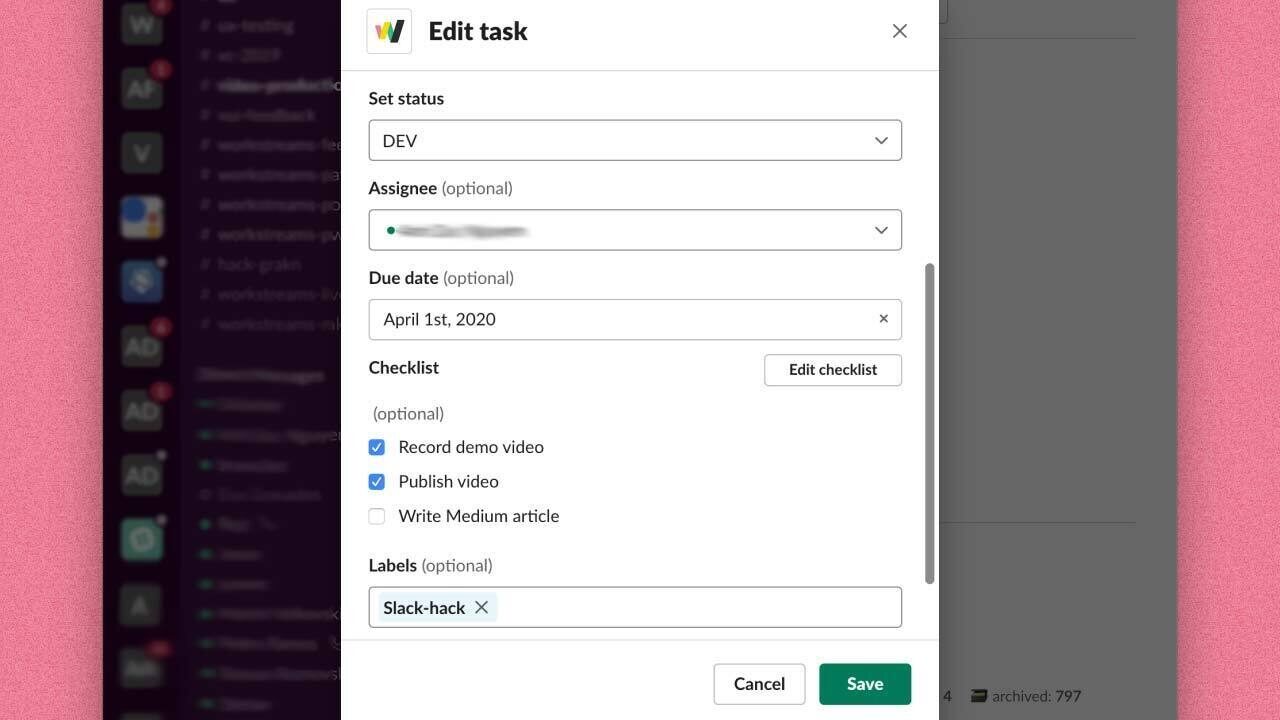 - Display checklists and enhanced editing for workstreams.ai tasks in Slack
