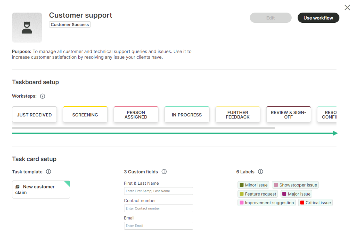 Here are a few benefits the Customer Support workflow provides: