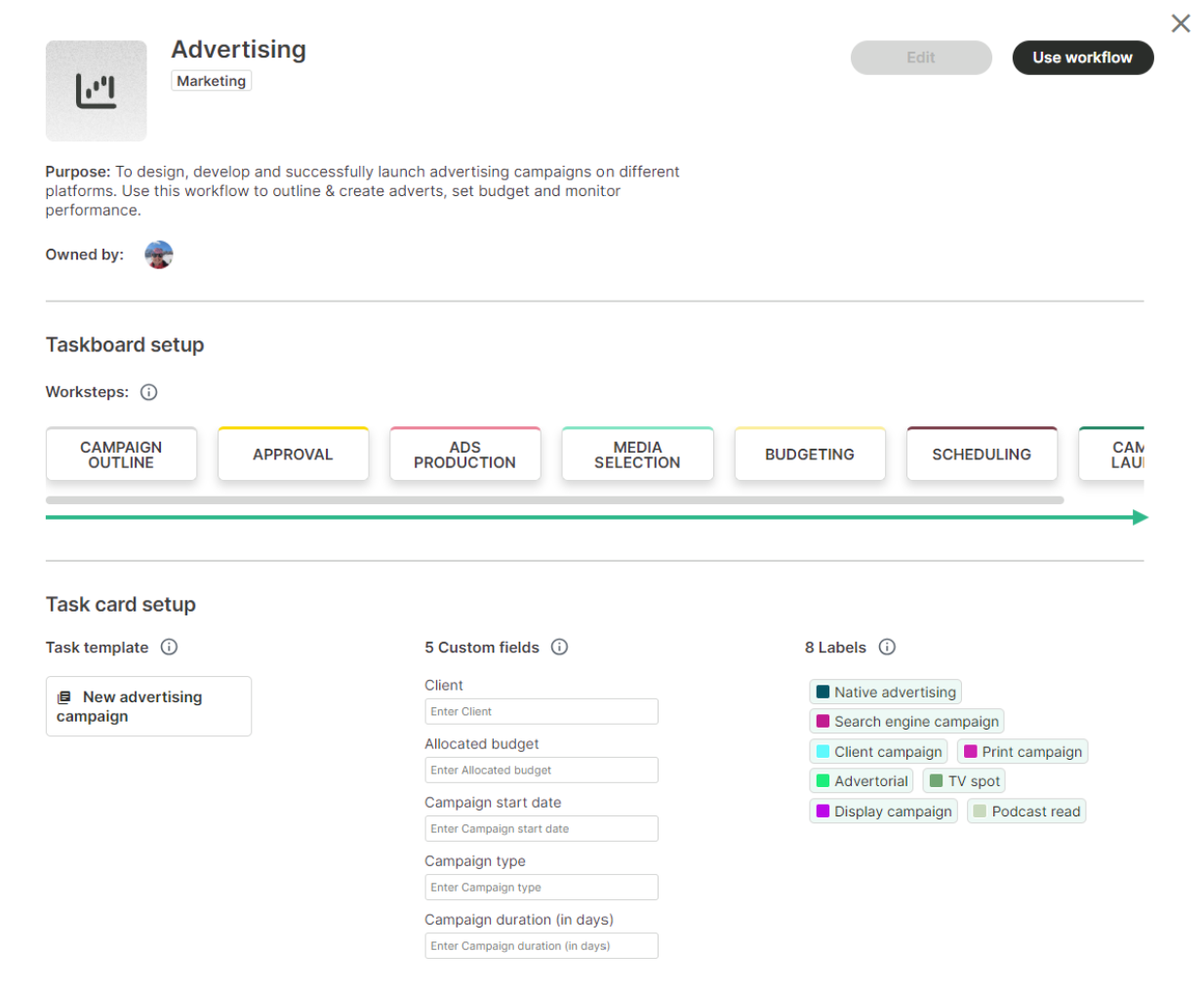 If you're looking for a Workflow for your Marketing Agency, you're in the right place. Our marketing project management software will help you seamlessly manage marketing and advertising campaigns for different clients.