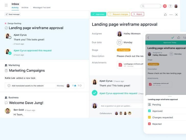 - Kommentare (mit Benachrichtigungen), die du in Aufgaben umwandeln kannst. Es gibt auch eine praktische Chat-Ansicht, um sie an einem Ort zu sehen.