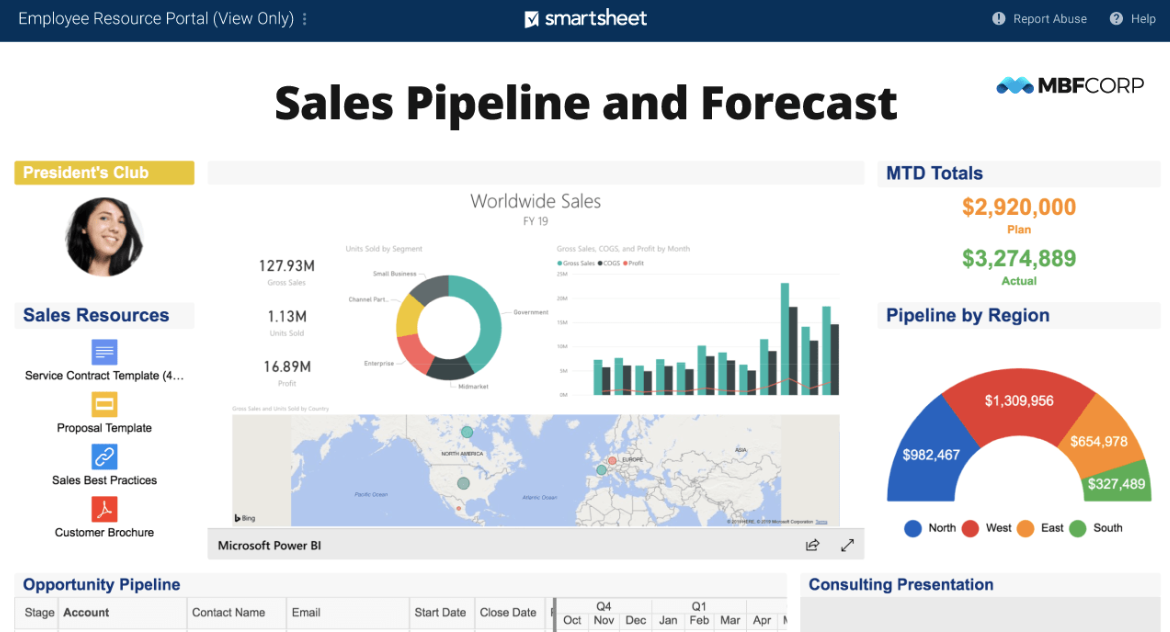 - Veröffentlichungsblätter, Berichtsfunktionen, Dashboards und Formulare, auch für Personen ohne Smartsheet-Zugang