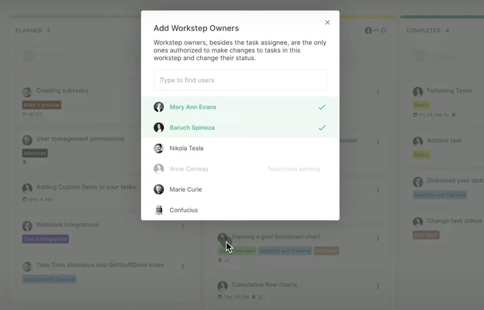 Wähle das Teammitglied aus, dem du die Aufgabe zuweisen möchtest