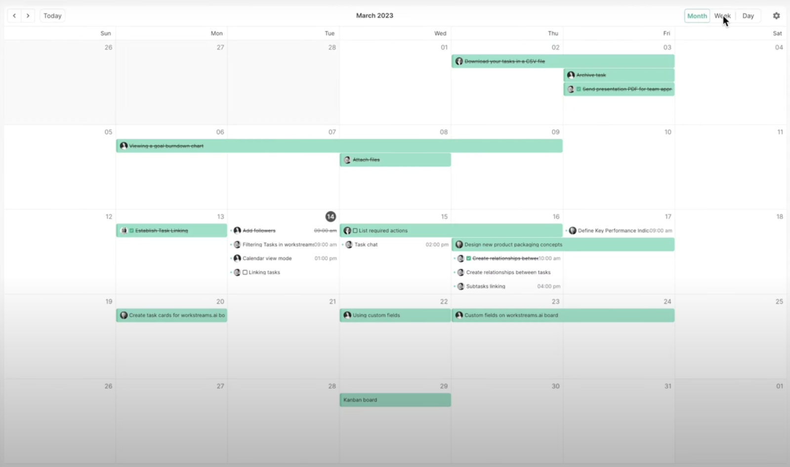 Die Aufgaben im Kalender sind nach Fälligkeit farblich gekennzeichnet, damit du deine Prioritäten immer im Blick behältst. Aufgaben, die ihr Fälligkeitsdatum überschritten haben, sind anders markiert, damit du sie nicht vergisst. Außerdem kannst du deine Unteraufgaben auch in der Kalenderansicht sehen.
