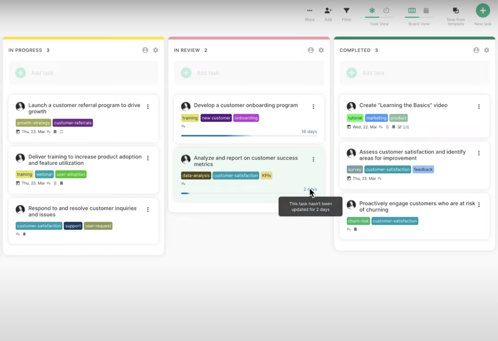 Intelligente Beschriftungen: Du kannst deinen Aufgaben benutzerdefinierte Etiketten hinzufügen, um sie nach Projektname, Komplexität, Priorität oder anderen Kriterien zu kategorisieren. Du kannst sie auch zur Farbcodierung und zur visuellen Unterscheidung verschiedener Kategorien verwenden.