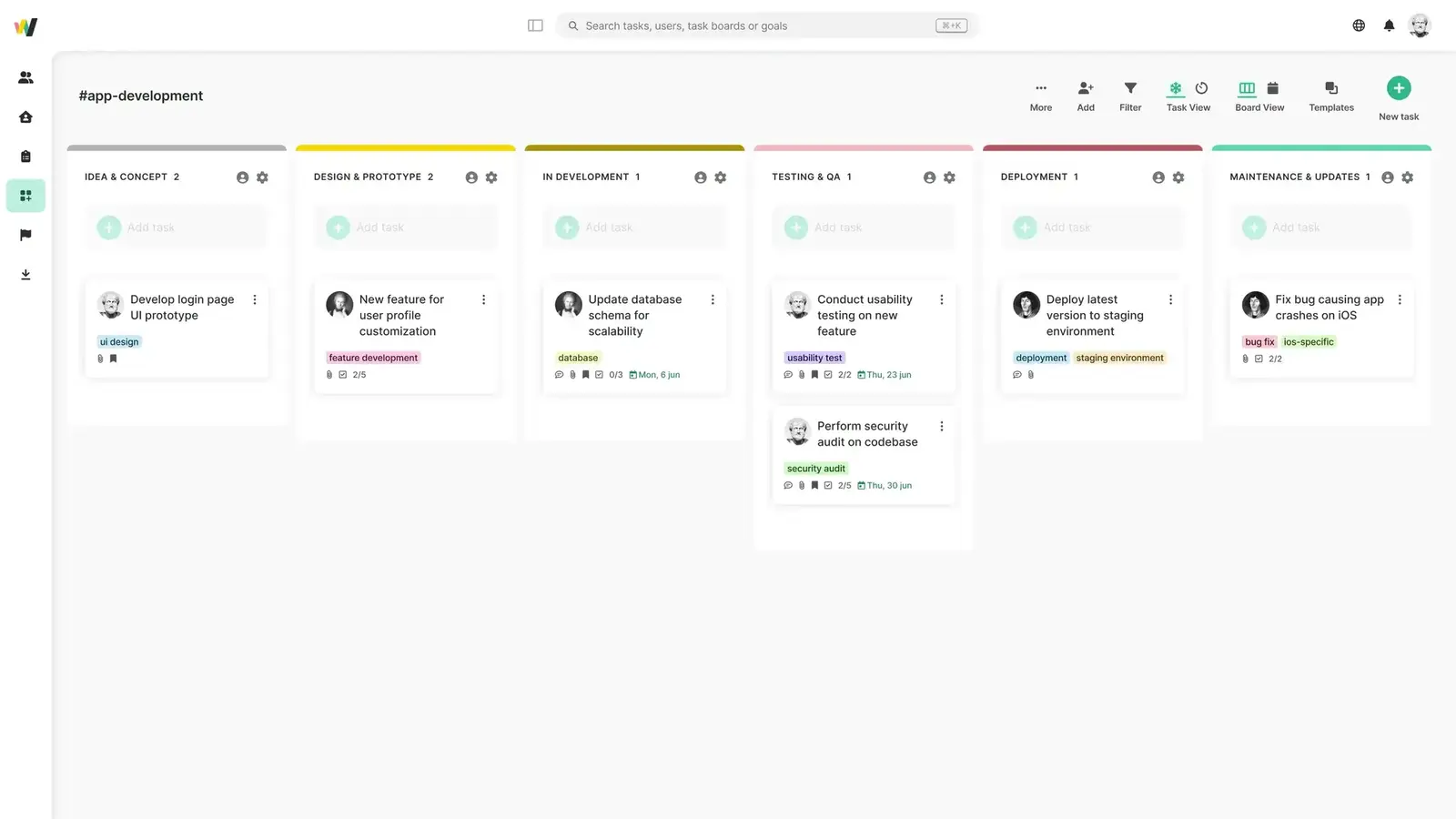Du kannst ganz einfach Aufgaben durchsuchen oder das Kanban-Board verwenden