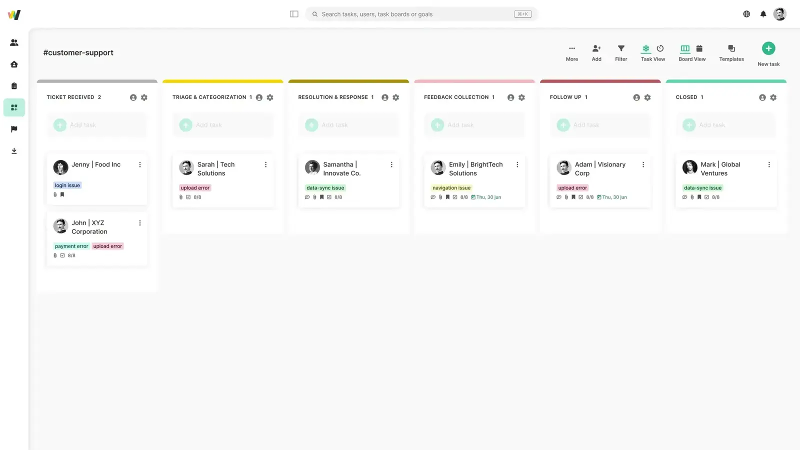 Mit unserer Lösung für den Kundensupport kannst du die Problemlösungsrate verbessern, indem du die Aufgaben den richtigen Teammitgliedern zuweist und große Mengen an Kundenanfragen bewältigst, ohne die Qualität der Dienstleistung zu beeinträchtigen.