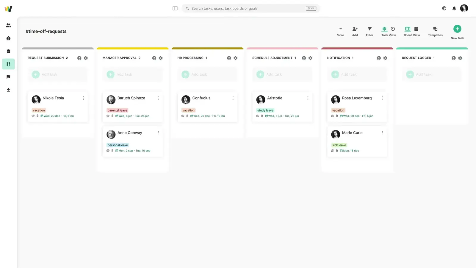 Verringerung menschlicher Fehler: Funktionen wie die automatische Weiterleitung erledigter Aufgaben sorgen für reibungslose Workflow-Prozesse, so dass deine Mitarbeiter/innen sich nicht mehr gegenseitig manuell informieren müssen und weniger Raum für Missverständnisse in der Kommunikation bleibt.