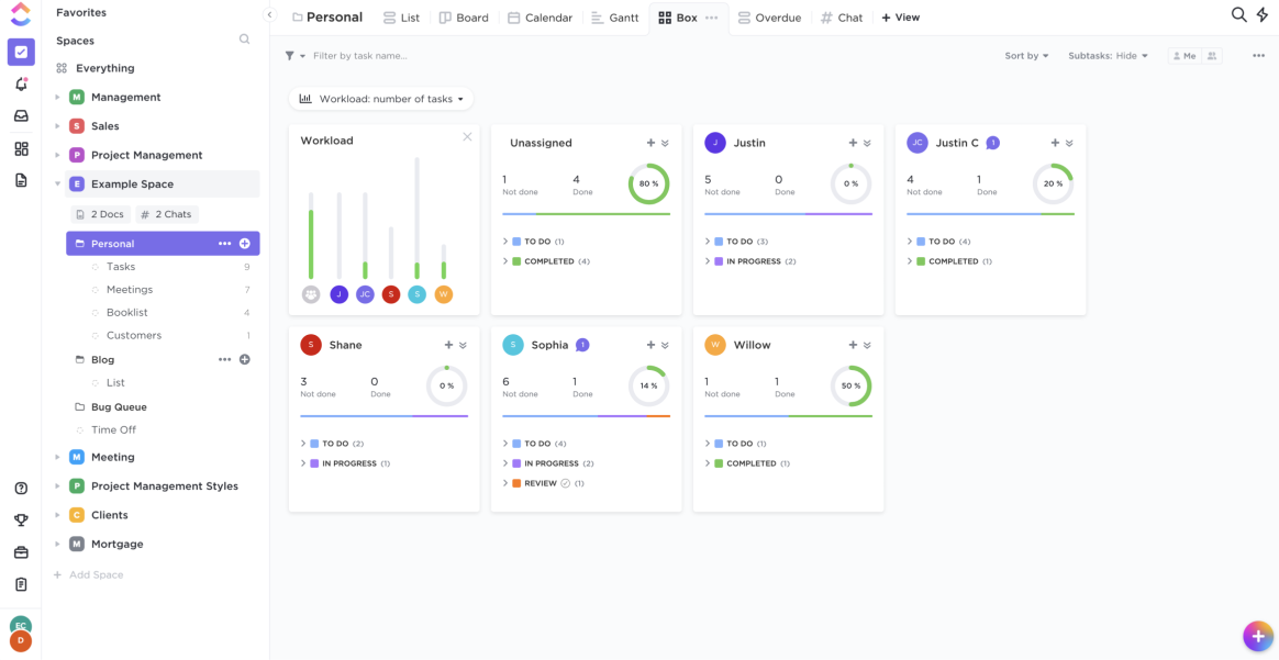 ClickUp ist eine Lösung, die sich für die Verwaltung von Projektunterlagen, die Zuweisung von Aufgaben und die Verfolgung von Zielen eignet.