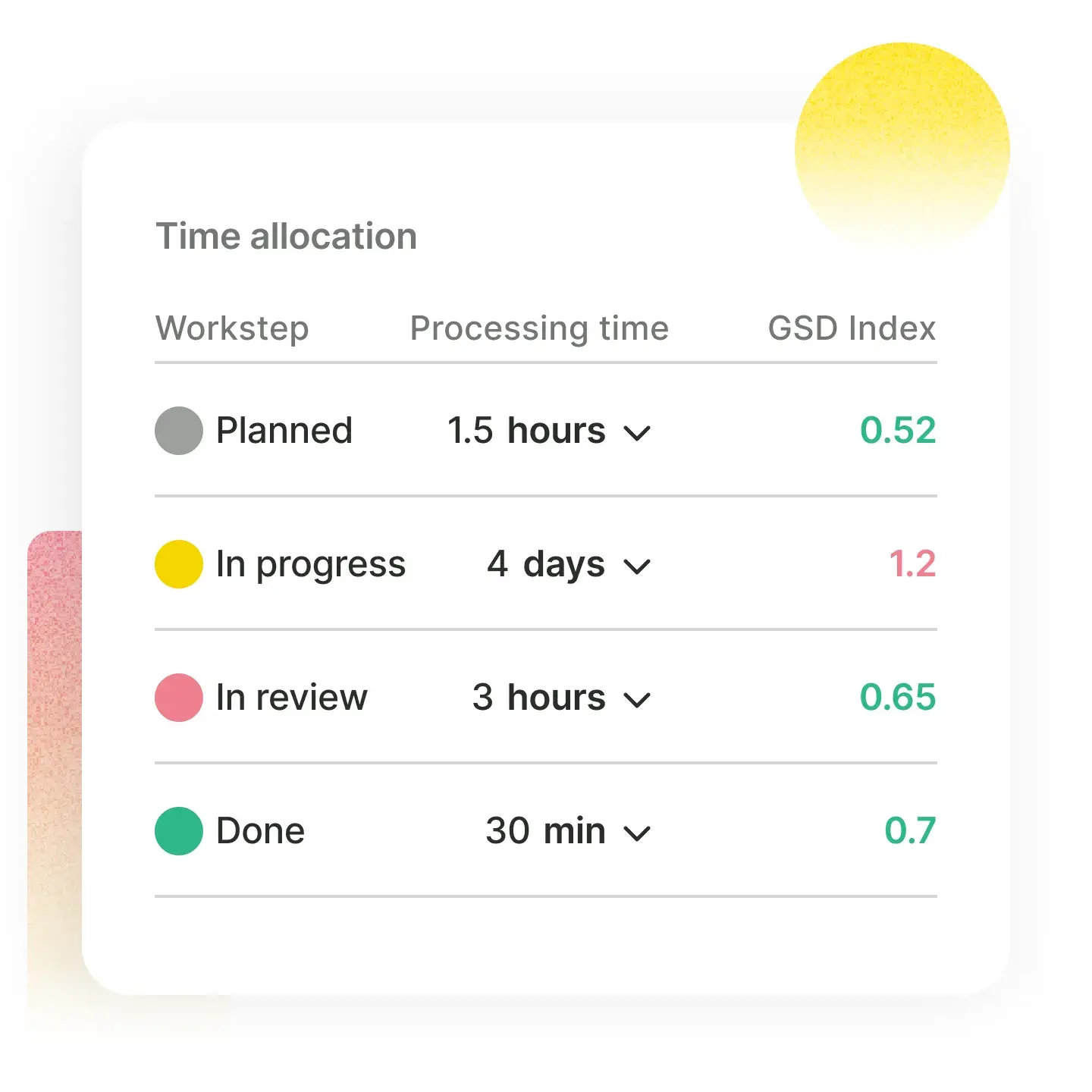 workstreams.ai stellt viele Projektmanagementfunktionen auf die nächste Stufe. Beispielsweise bietet es neben der Zeiterfassung auch datenbasierte Schätzungen der Aufgabendauer. Die Zeitzuweisungsfunktion hilft dir, Projekte zu planen, Engpässe zu erkennen und datenbasierte Entscheidungen zu treffen.