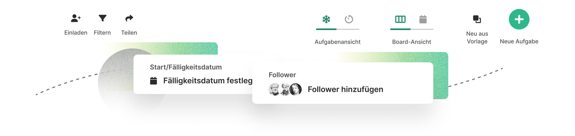 Untergliedere deine Aufgabe in kleinere Schritte und hake sie nach und nach ab. Weise Teammitglieder jeder Teilaufgabe zu und gib ihr ein eigenes Fälligkeitsdatum.