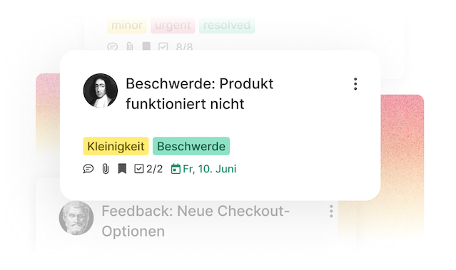 Es kann anstrengend werden. Eine endlose Flut von Kundenbeschwerden, Vorschlägen und Feedback. Das kann überwältigend werden. Keine Sorge, unsere App verfügt über hervorragende Kanban-basierte Priorisierungsfunktionen, um die Flut in einen effizienten Strom zu verwandeln.