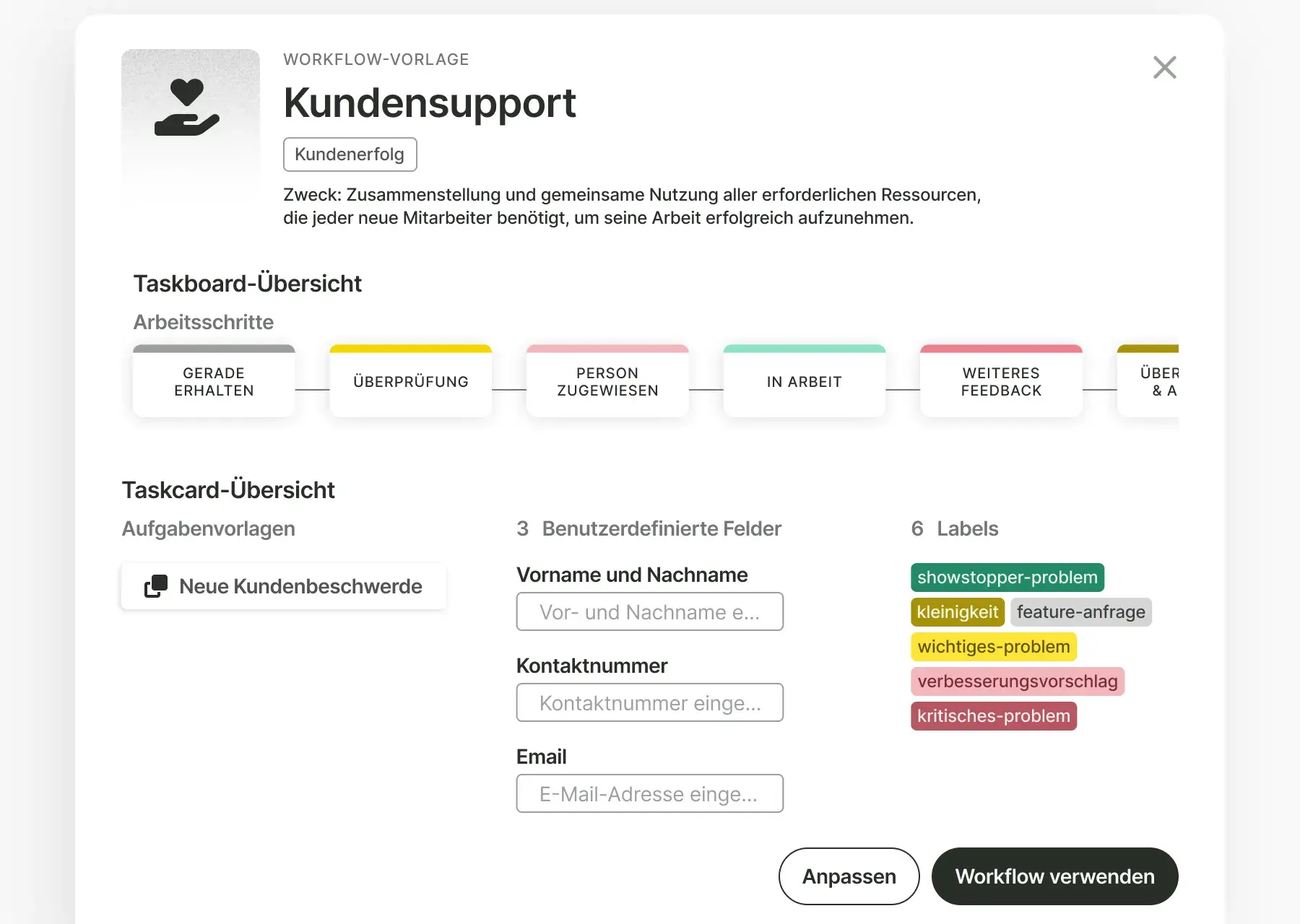 Das Abschließen einer Beschwerde kann sich lohnend anfühlen. Ebenso die Bearbeitung von Kundenfeedback. Aber wie kann man diese positiven Ergebnisse beibehalten, wie kann man den Prozess, von dem man weiß, dass er funktioniert, standardisieren? Dann sind unsere Workflows genau das Richtige für dich!