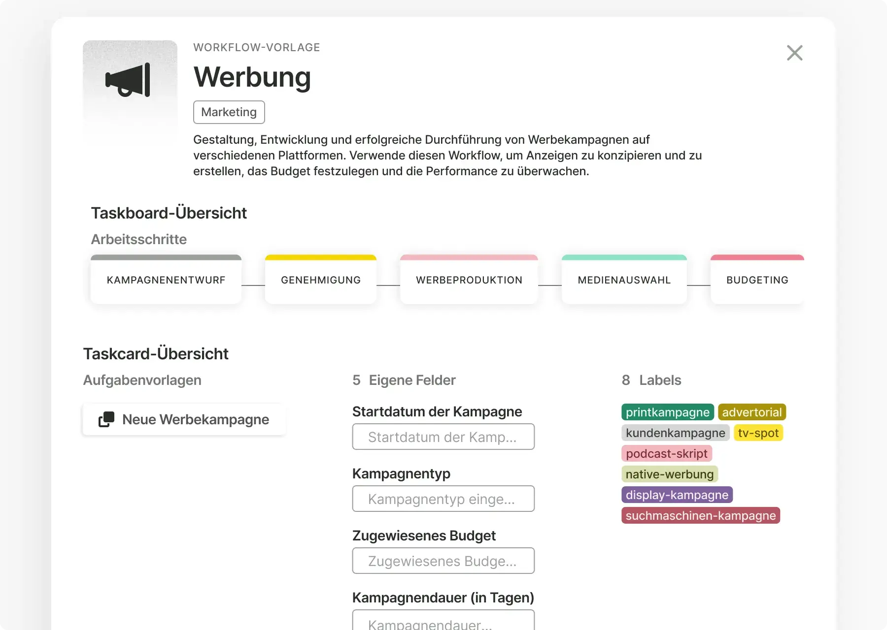 Alle deine laufenden Kampagnen und andere Marketingprozesse in einer einzigen Übersicht, unterstützt durch unsere Workflows.