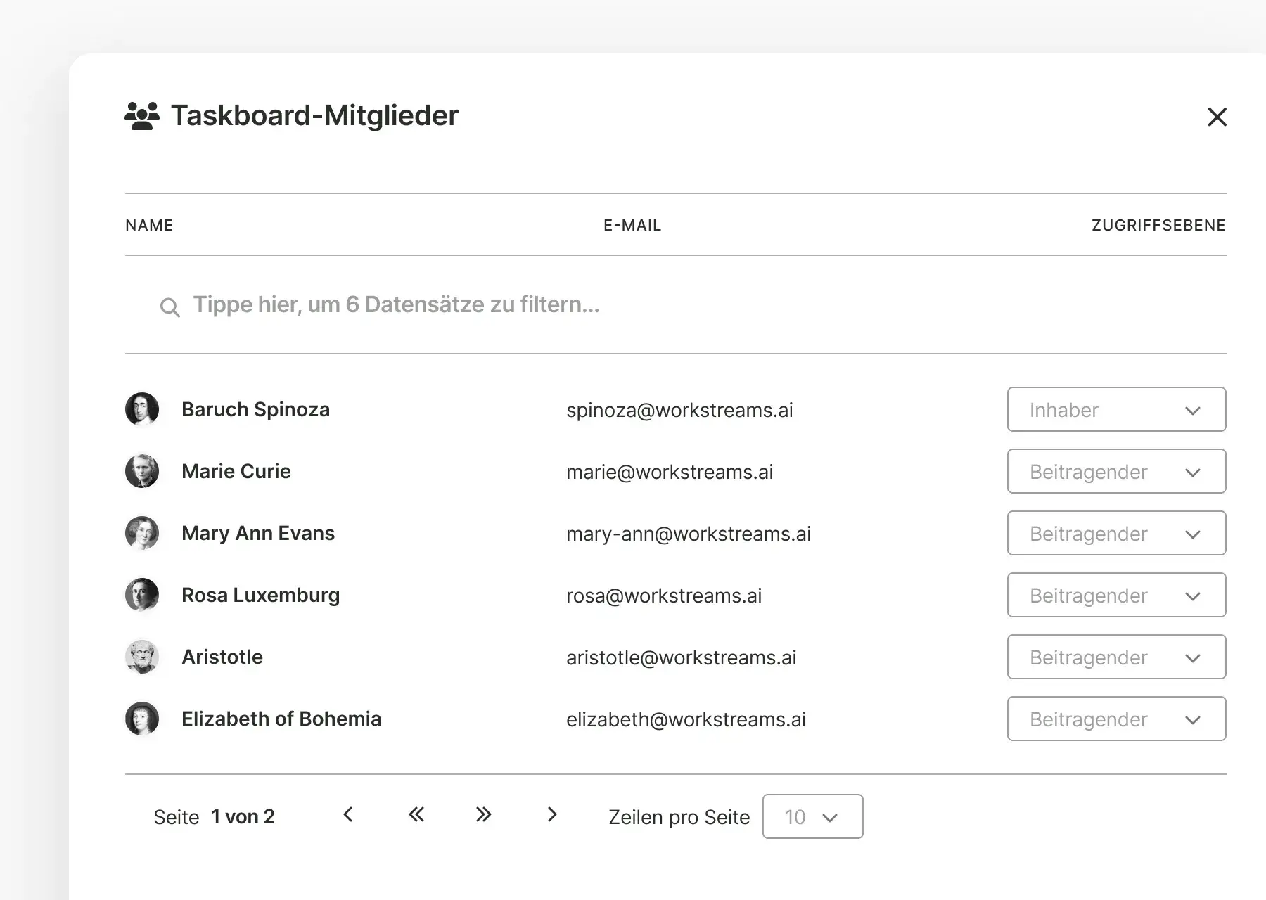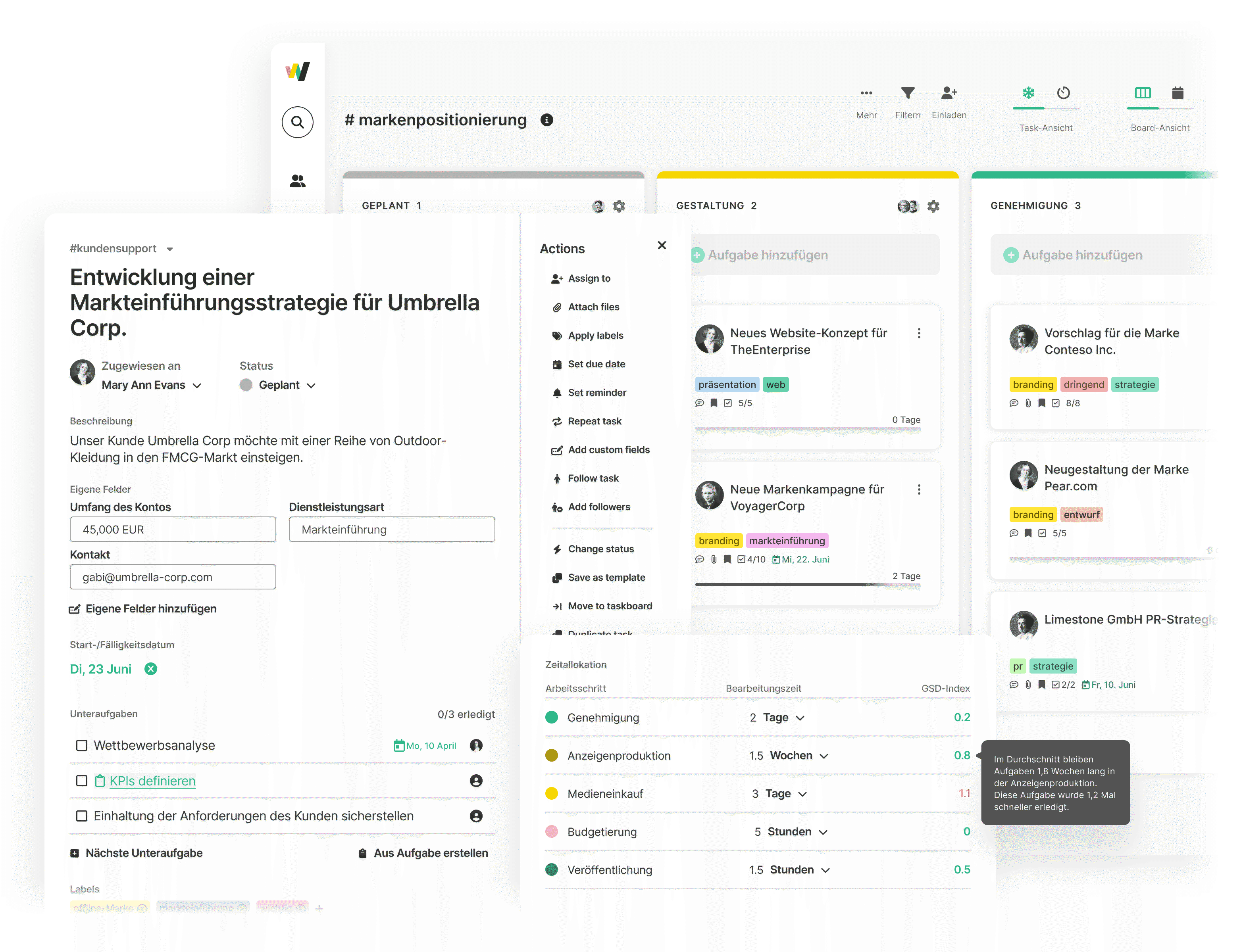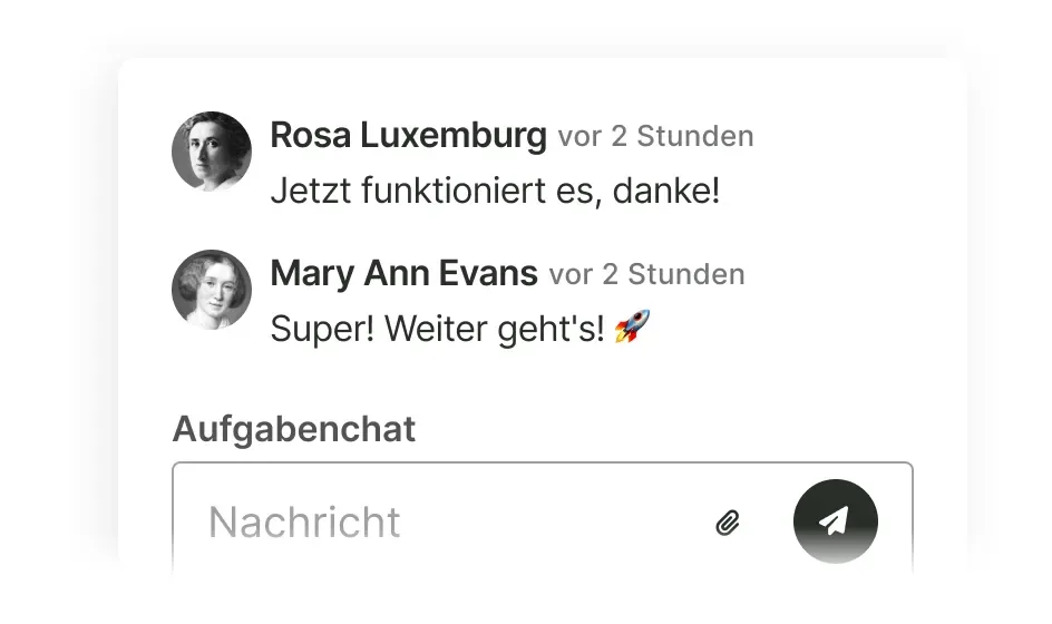 Die Kommunikation mit deinen Kunden während der gesamten Geschäftsbeziehung ist entscheidend für eine dauerhafte, produktive Beziehung. Leichter gesagt als getan. Unsere App hilft dir, mit deinen Kunden in Kontakt zu bleiben, indem du sie direkt ins Geschehen einbeziehst! Lade sie zu deinen Taskboards ein, füge sie als Beobachter zu bestimmten Aufgaben hinzu, sprich mit ihnen direkt im Kontext der anstehenden Arbeit!