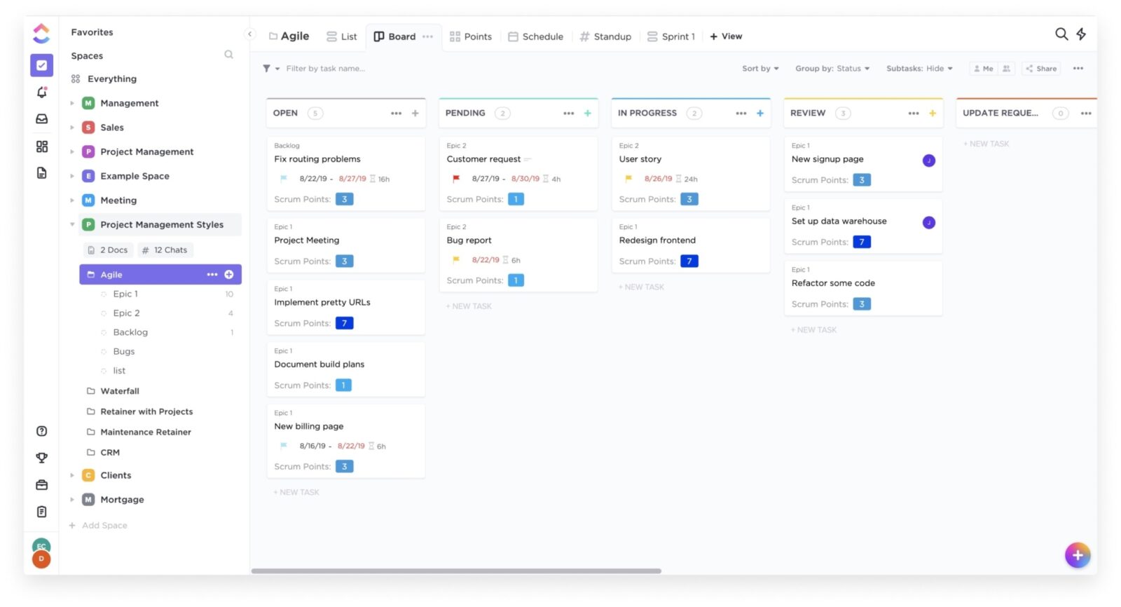 O ClickUp é adequado para acompanhar metas mais complexas, pois permite dividir a grande meta em tarefas menores e, em seguida, acompanhar os marcos com sua equipe.