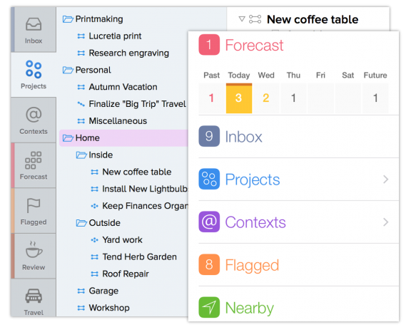 O OmniFocus tem uma interface intuitiva que permite que você organize suas tarefas reunindo-as em grupos com base na similaridade e adicionando tags.
