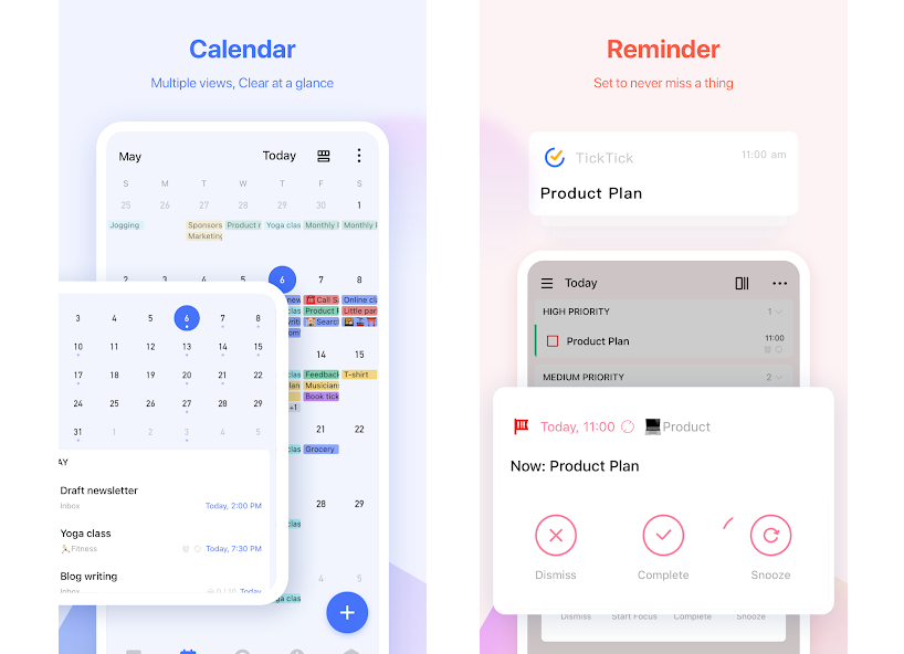 Se estiver procurando uma ferramenta simples e fácil de usar, o TickTick pode ser uma excelente solução. Você pode escolher entre a visualização de calendário ou diária e usá-la para agendar datas e horários precisos.