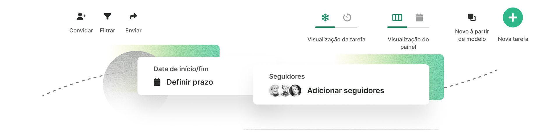 Defina a criação automática de tarefas em um intervalo de sua escolha. Automatize as tarefas para que apareçam diariamente, semanalmente ou mensalmente. Salve tarefas recorrentes e agrupe-as em modelos para repetir seu fluxo de trabalho regularmente.