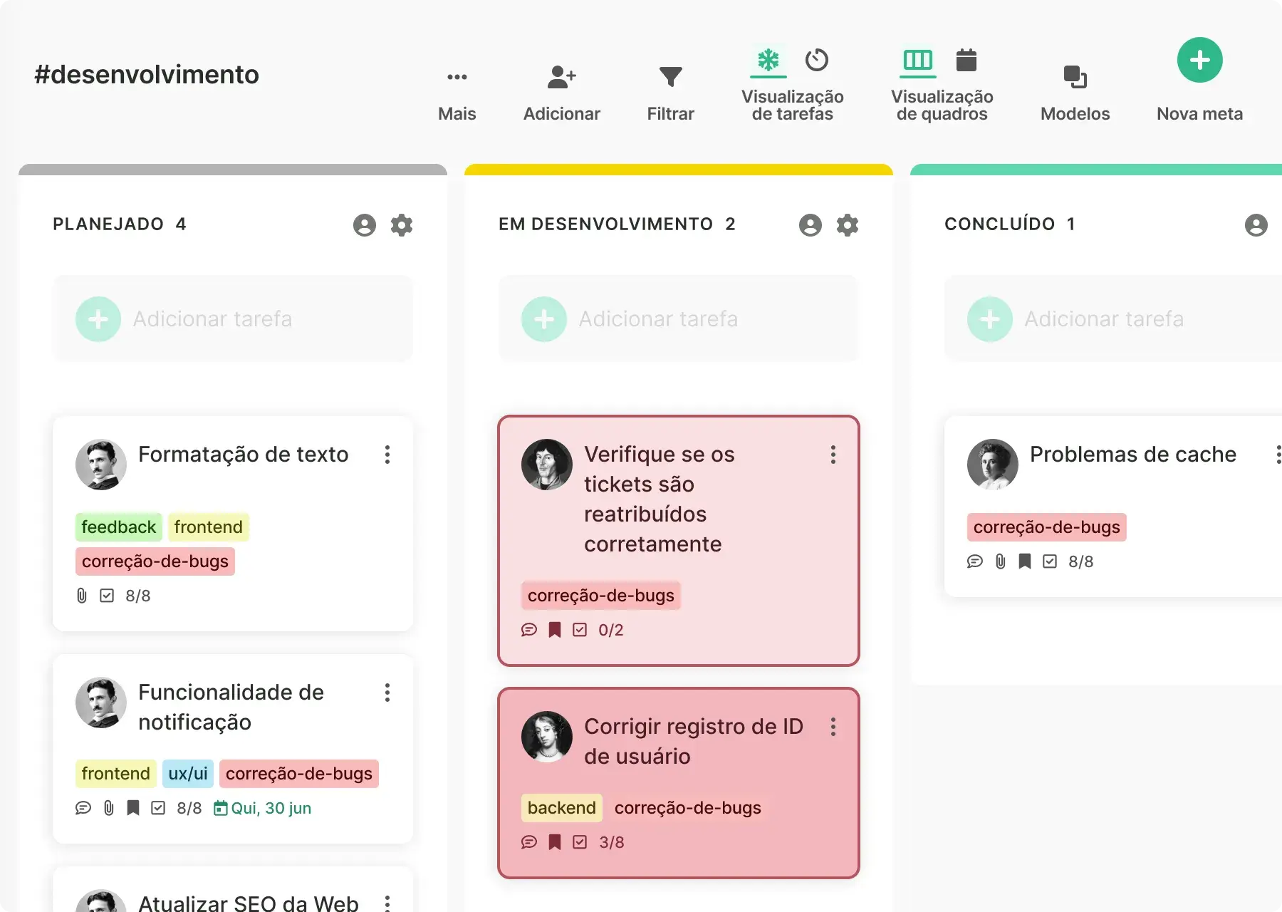 Todos os bugs podem ser corrigidos de forma rápida e coerente com a atribuição de tarefas em seu quadro. Rotule todos os bugs com um rótulo de BUG exclusivo. Assim, a sua equipe de desenvolvimento poderá puxar as tarefas sempre que estiver com vontade de eliminar os bugs. Faça com que isso seja fácil!
