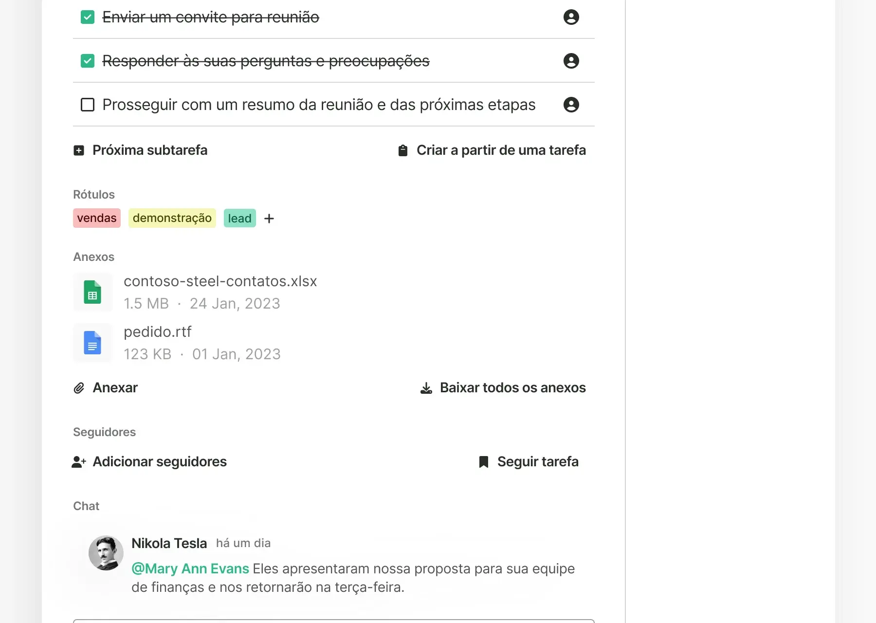 Algumas negociações de ida e volta estão sempre no cerne de um processo de vendas. É nesse momento que as tarefas avançam para a próxima etapa do seu fluxo de trabalho, e um membro da equipe sabe quando assumir a responsabilidade.